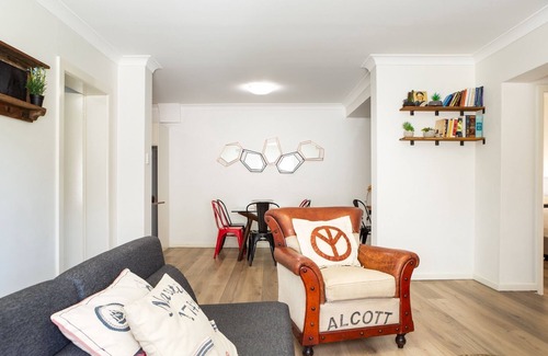 Located in the quiet suburb of Strathfield, this two-bedroom, one-bathroom apartment is metres from trains into the Sydney CBD, along with popular shops and restaurants at Strathfield Plaza. It promises a carefree holiday for families with Wi-Fi, unlimited parking, a flat-screen TV, study nook and a well-equipped laundry. The modern kitchen caters to families who love to eat in, while the front porch is ideal for an afternoon coffee. It’s also close to the motorway for easy access to beaches.